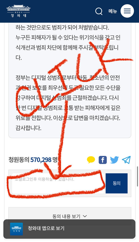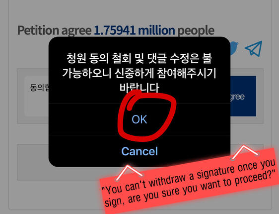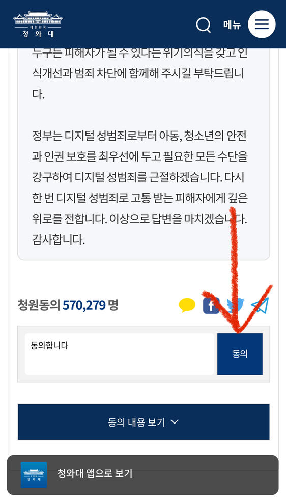 Click the blue button [동의] (I agree). You do not have to edit what's in the text box (it says "I agree").
